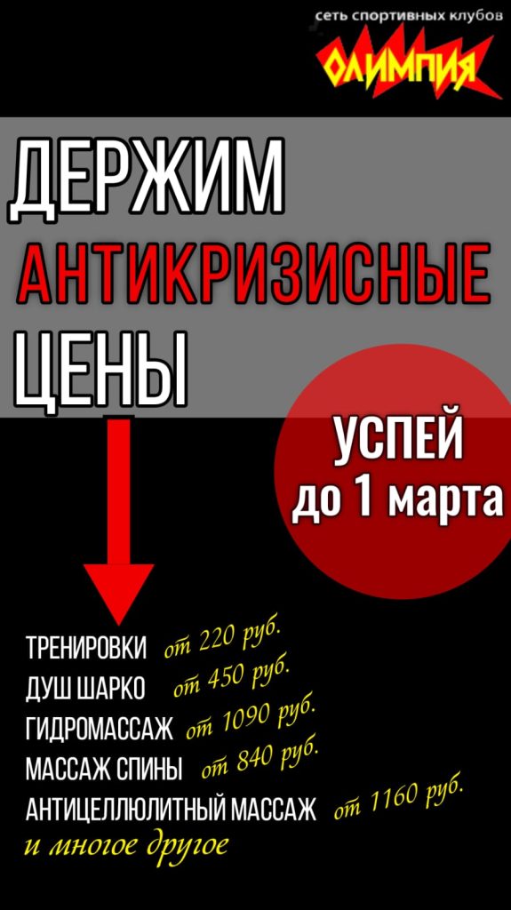 ВНИМАНИЕ! С 1.03. в СОК Олимпия по адресу 2-я Краснодарская 92б, планируется изменение цен. Успейте приобрести услуги по более выгодной стоимости уже сейчас